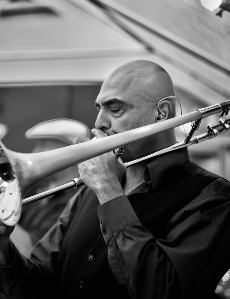 Fayyaz Virji is a distinguished trombonist, composer, arranger, and producer whose career spans jazz, soul, pop, and cinematic music. A long-standing member of Jools Holland’s Rhythm & Blues Orchestra. Fayyaz co-leads Fillet-o-Soul, with Chris Storr.